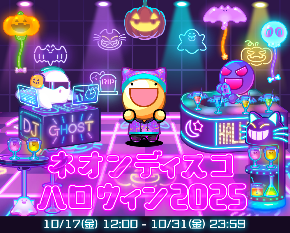 ネオンディスコハロウィン 開催 2025年10月17日 ふしぎな生き物 ふにゃもらけで『ネオンディスコハロウィン』のイベントを開催しています。 イベント期間中にしか行けない限定おでかけハロウィンディスコに行くと、限定そざいアイテムを入手できます。それらを材料にしてネオンディスコハロウィンをテーマにしたアイテムを製造できます。 前へ 一覧 次へ