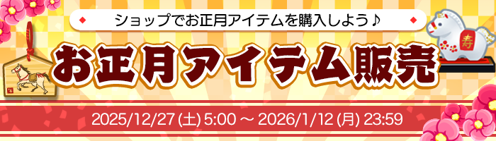 お正月アイテム販売 開催 2025年12月27日 ふしぎな生き物 ふにゃもらけで『お正月アイテム販売』イのベントを開催しています。 過去に入手できたお正月アイテムをショップでリバイバル販売しています。さらに2026年の新作も販売されます。 前へ 一覧 次へ