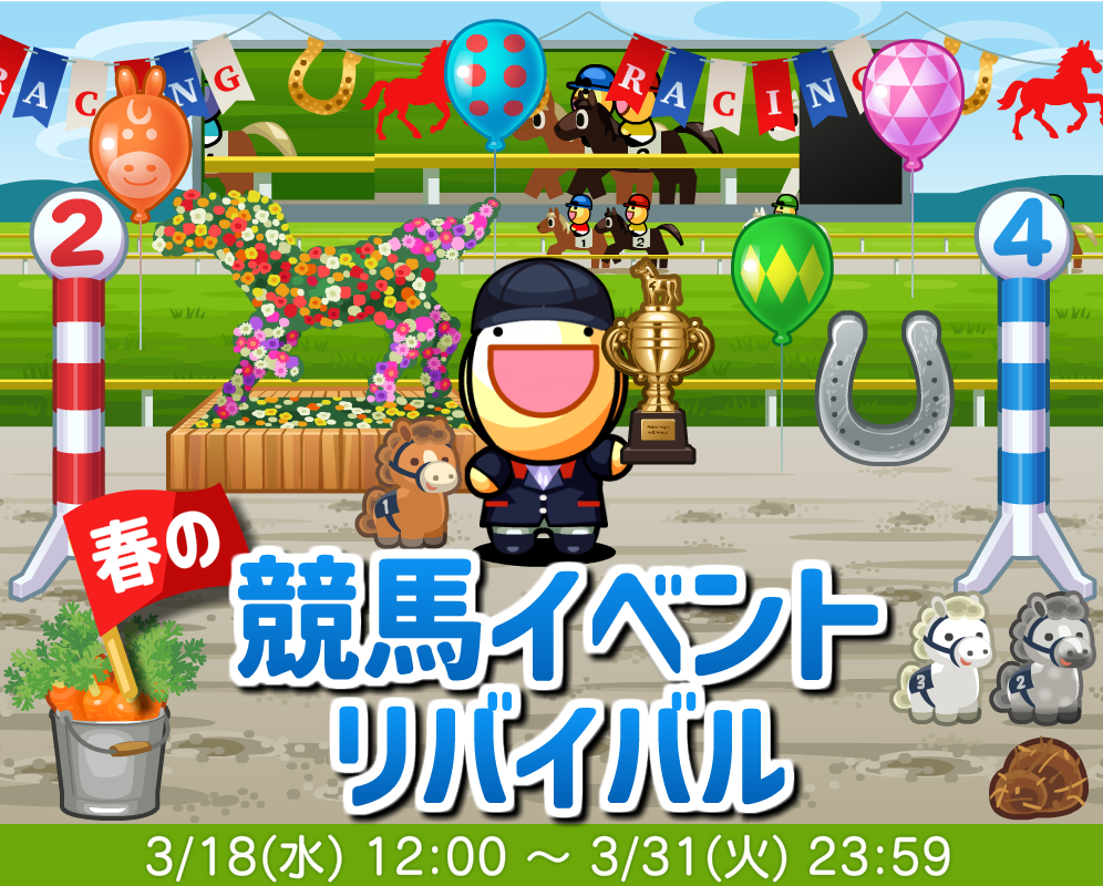 ふしぎな生き物 ふにゃもらけで『春の競馬イベントリバイバル』を開催しています。
